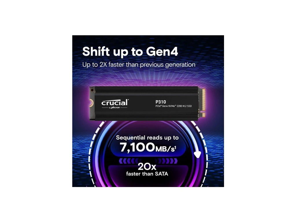 Crucial SSD P310 2TB M.2 NVMe Gen4 7100/6000 MBps Heatsink (PS5 Ready)/ PN: