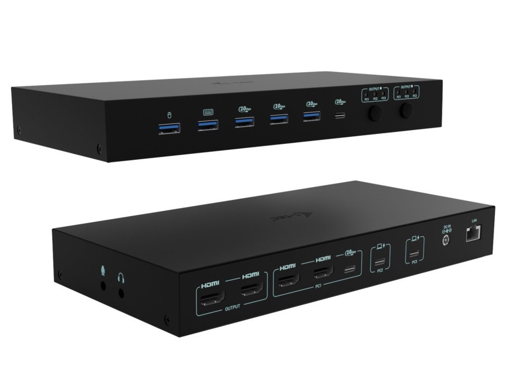 i-tec USB-C KVM Docking station pre 3 Hosts, Dual Display, 2x Power Delivery (1x 92W/2x 65W)/ PN:C31KVMDOCKPDPRO