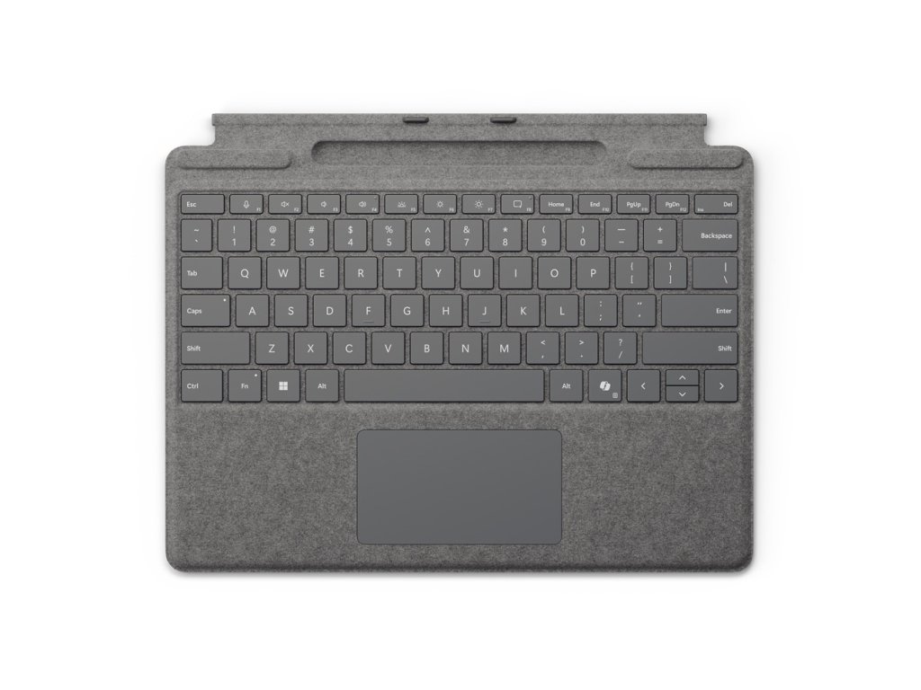 klávesnice Surface Pro se slotem pro peroPosuňte všestrannost na novou úroveň s perfektní prémiovou klávesnicí s mechanickými a podsvícenými klávesami, která nabízí skleněný touchpad a zbrusu novou klávesu Copilot, abyste měli AI na dosah ruky. Díky integrovanému slotu Pero Surface Slim Pen máte zajištěné bezpečné a snadné dobíjení.