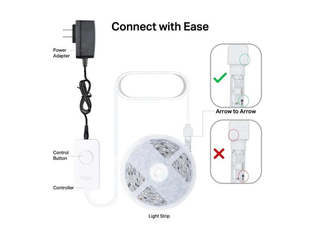 Snadné zprovoznění - pomocí 3M pásky přilepte světelný pásek na požadované místo, připojte jej k Wi-Fi a nakonfigurujte pomocí aplikace.